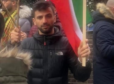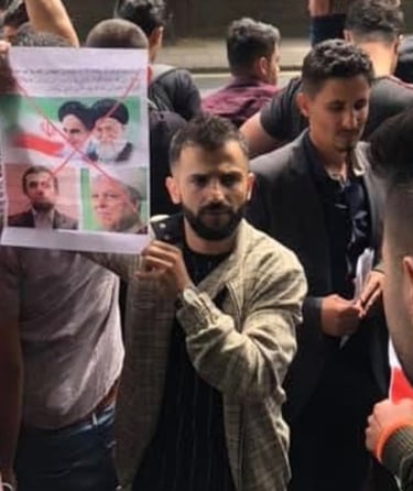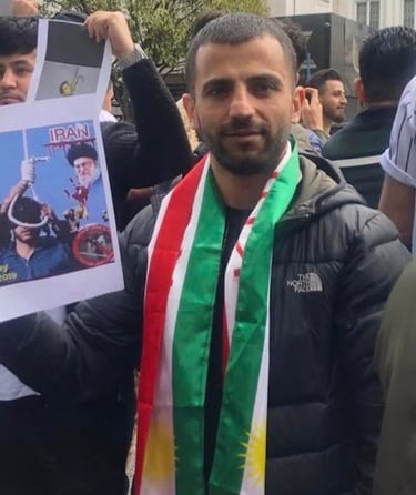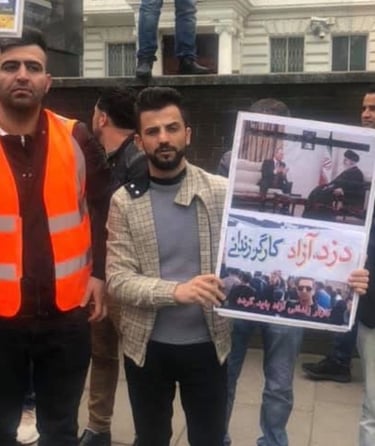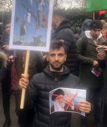 Protest against the Iranian government, supporting public demonstrations and calling for an end to executions, killings, and repression of Kurdish people.