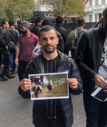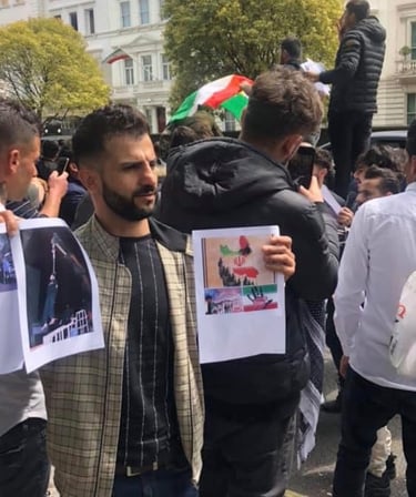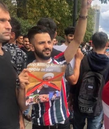Participation in a demonstration against the Islamic Republic of Iran, protesting long-term repression, arrests, imprisonment, and violence against Kurdish people.